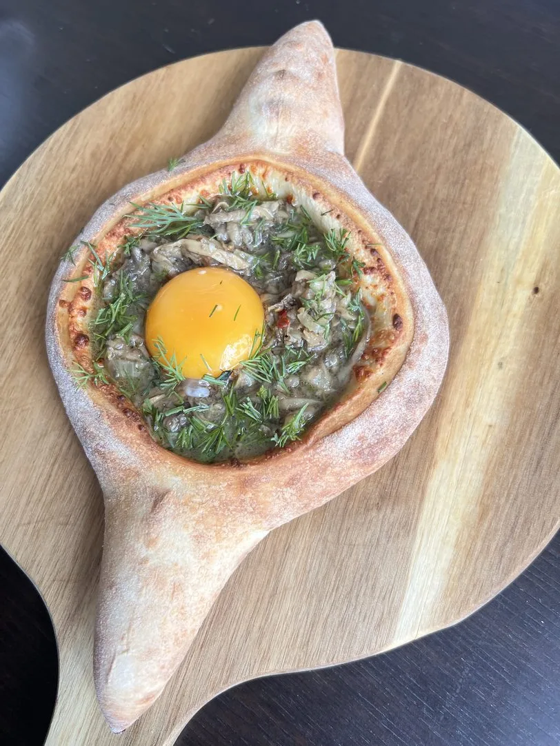 Хачапури по-аджарски с шампиньонами и яйцом 450гр.